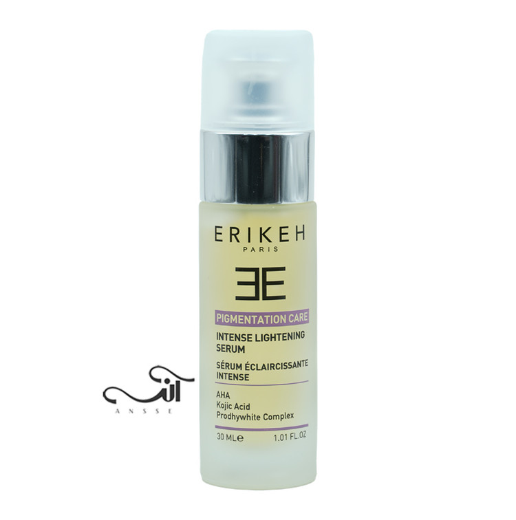 سرم ضد لک قوی از برند اریکه همچنین دارای ترکیبات گیاهی قوی مانند شیرین بیان، شاه توت، نعنا و کوجیک اسید برای کاهش موثر تیرگیهای پوست