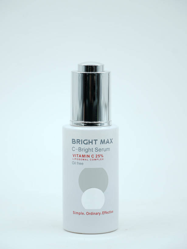 سرم ویتامین سی bright max عرضه شده در بطری شیشه ای قطره چکان دار به حجم 30 میلی لیتر