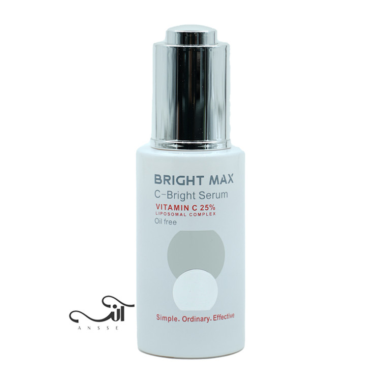 سرم ویتامین سی bright max عرضه شده در بطری شیشه ای قطره چکان دار به حجم 30 میلی لیتر