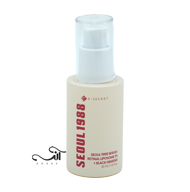 سرم سئول 1988 از برند کره ای K-Secret با 2 درصد رتینال لیپوزومی و جینسینگ سیاه طراحی شده که برای پوست های بالغ و دارای علائم اولیه پیری مانند یک معجزه عمل می کند.رتینال موجود در این سرم ، علائم اولیه پیری نظیر تیرگی، چین و چروک و افتادگی را کاهش می دهد و با افزایش خاصیت ارتجاعی پوست موجب جوانی و درخشندگی چهره می شود.58% عصاره جینسنگ سیاه نیز دارای خواص انتی اکسیدان،ضد التهاب و تقویت کننده است که تولید کلاژن را افزایش می دهد.